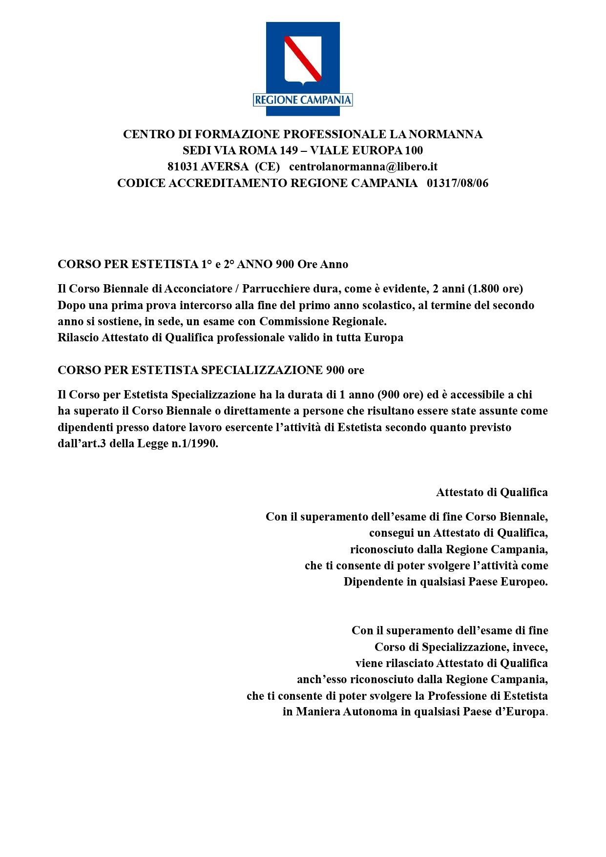 Il Centro La Normanna è l'istituto di formazione professionale leader ad Aversa, ufficialmente autorizzato dalla Regione Campania. Il nostro obiettivo è offrirti una preparazione eccellente, mirata a un ingresso immediato e di successo nel mondo del lavoro.