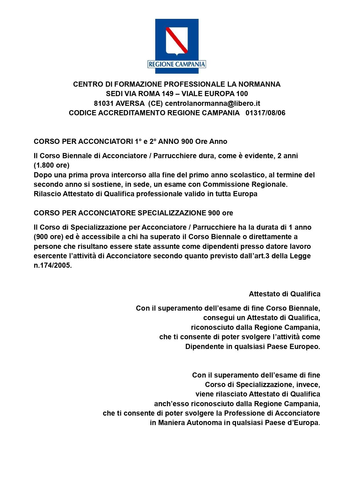 - CORSO PER ACCONCIATORI 1° e 2° ANNO 900 Ore Anno